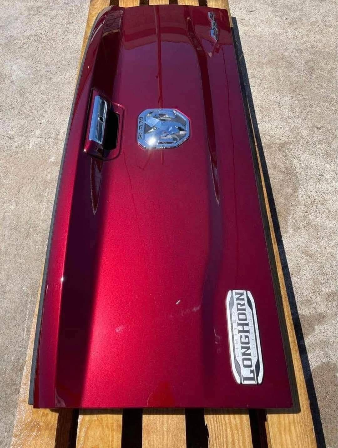 For sale is a factory take off tailgate, off of a 2020 Ram 2500 Laramie Longhorn. This tailgate will fit the 2019, 2020, 2021 and 2022 Ram 2500 3500 only. The factory color is Delmonico Red Pearl-Coat. Has the push button release, and camera hole just no wiring harness.