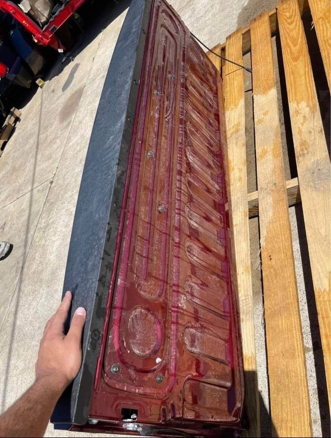 Tailgate is in excellent condition with no noticeable flaws. Has no dents/dings or scratches on the surface. Look at pictures before purchasing, sold as is.